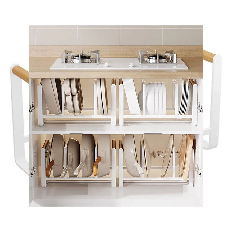 Конструкция с несколькими отделениями позволяет одновременно хранить кастрюли и их крышки (или другую кухонную утварь), устраняя необходимость в «штабелировании» и беспорядочном расположении.